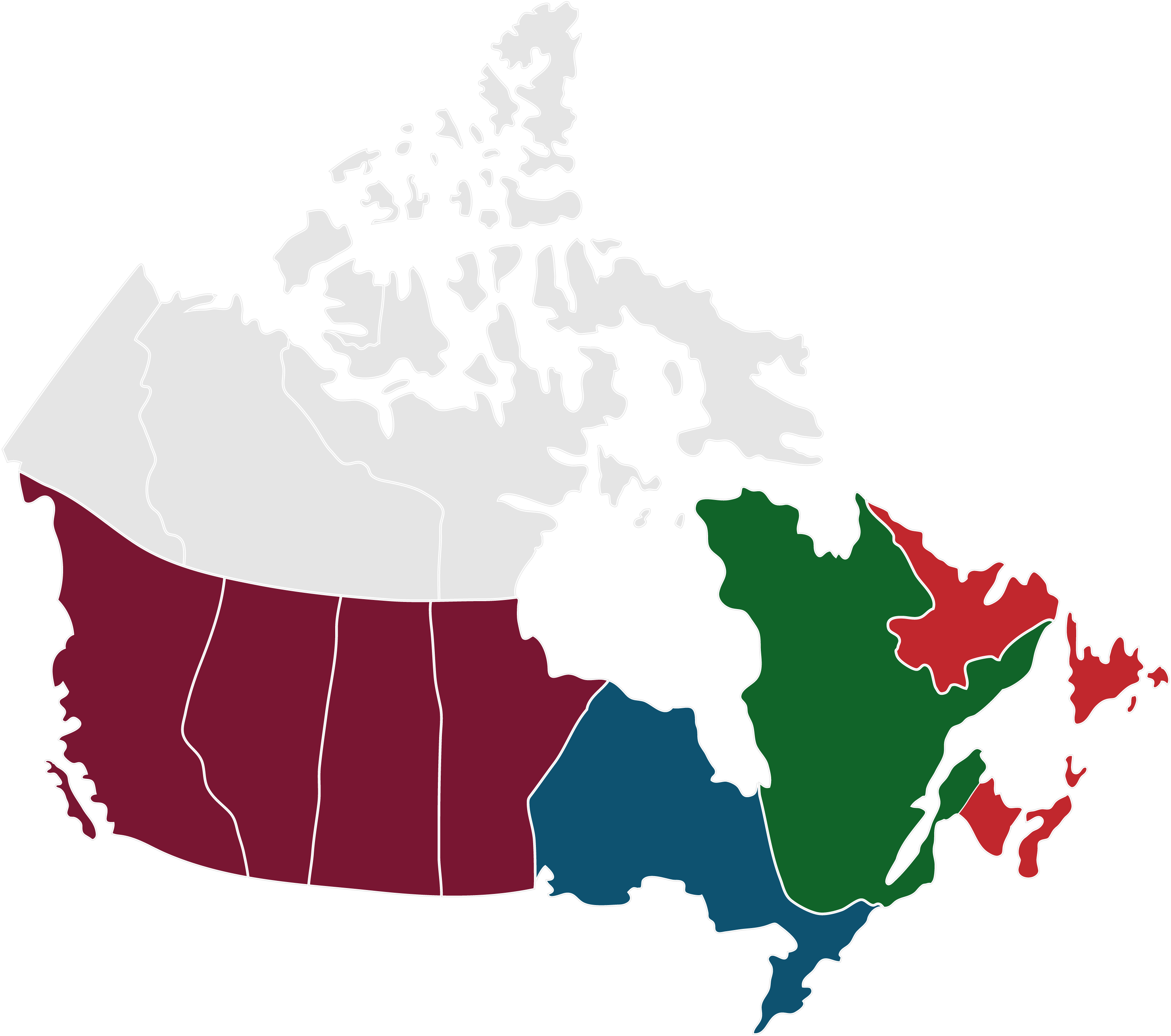 British Columbia, Alberta, Saskatchewan, Manitoba